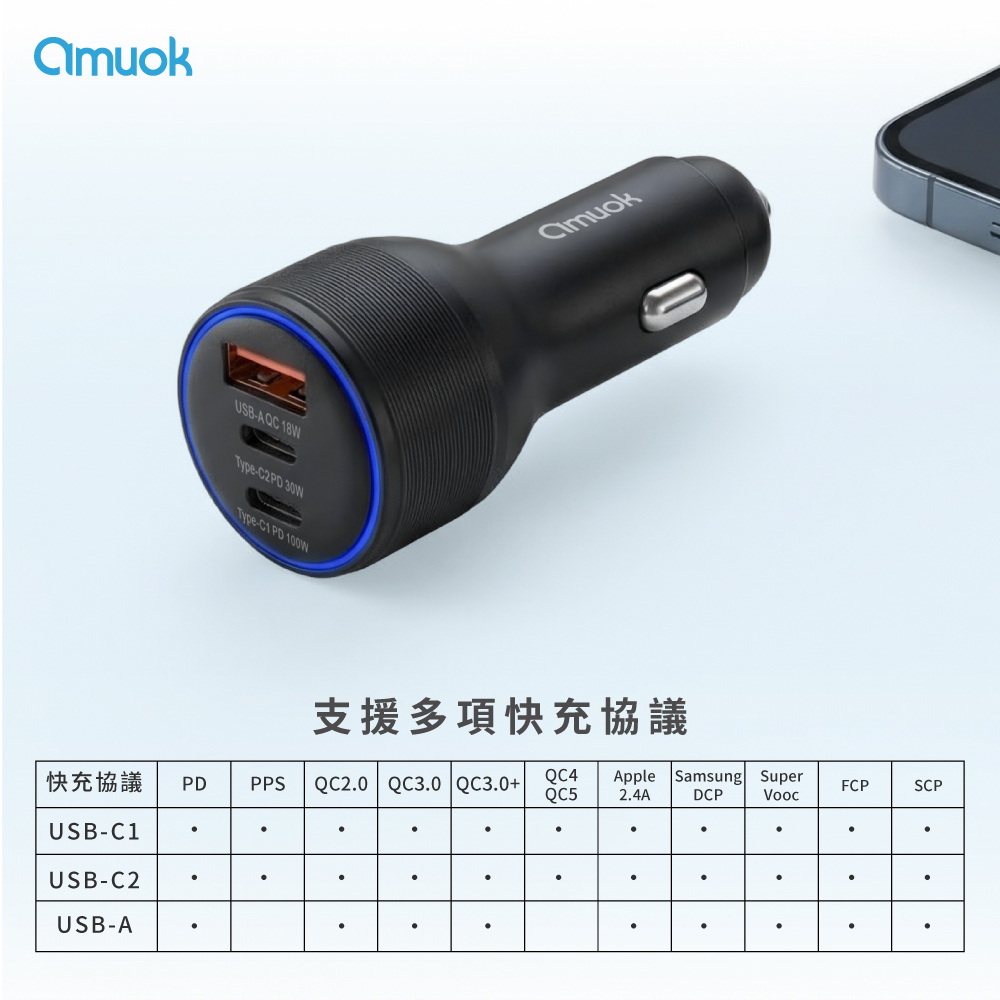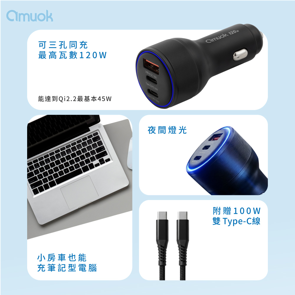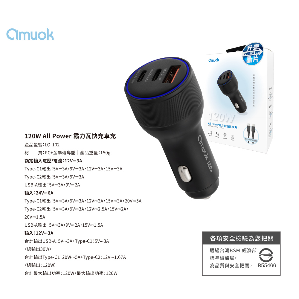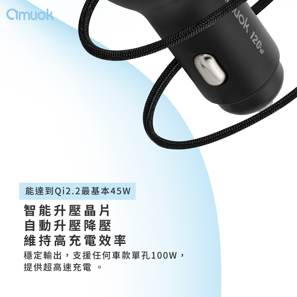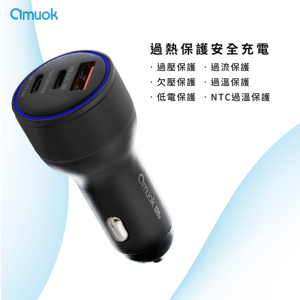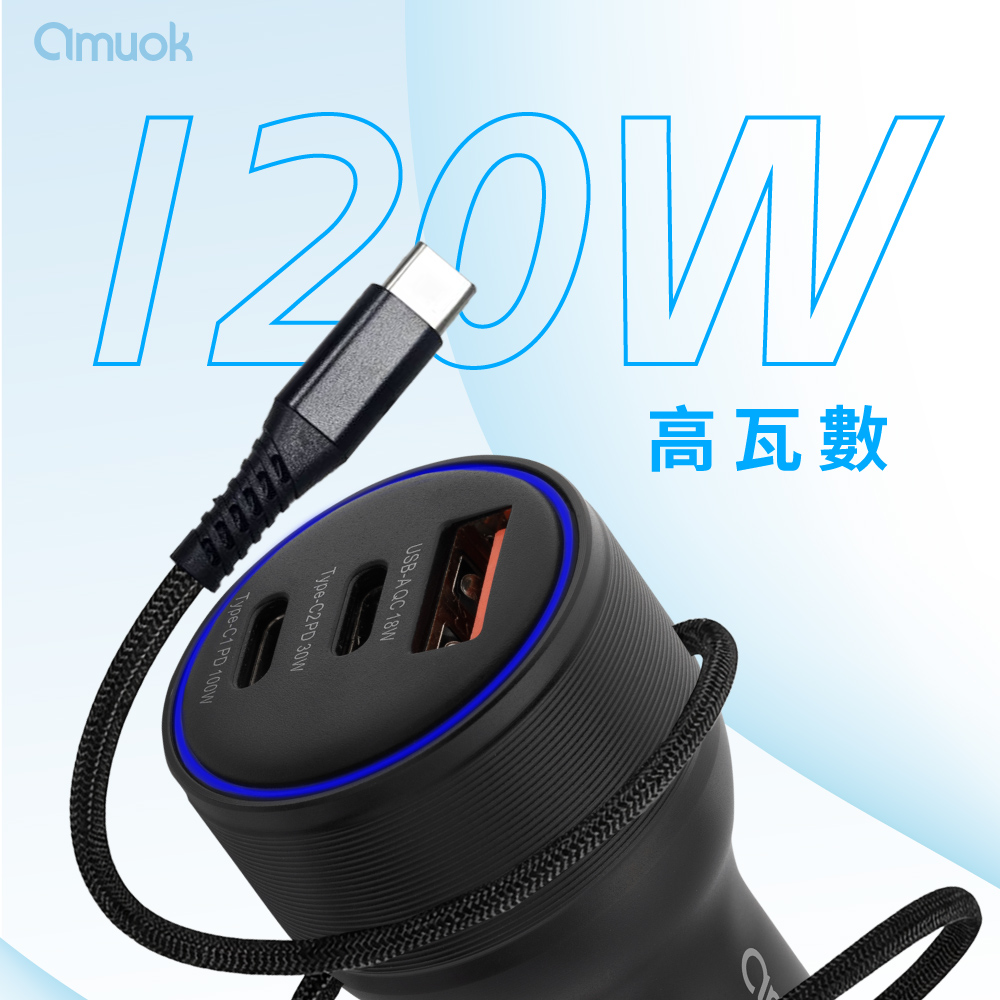 【amuok】 霸力瓦120W快充車充-黑