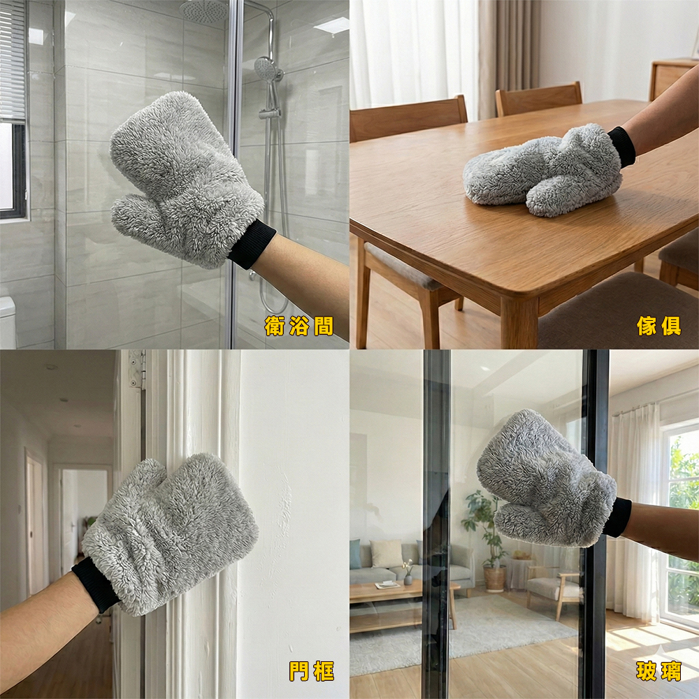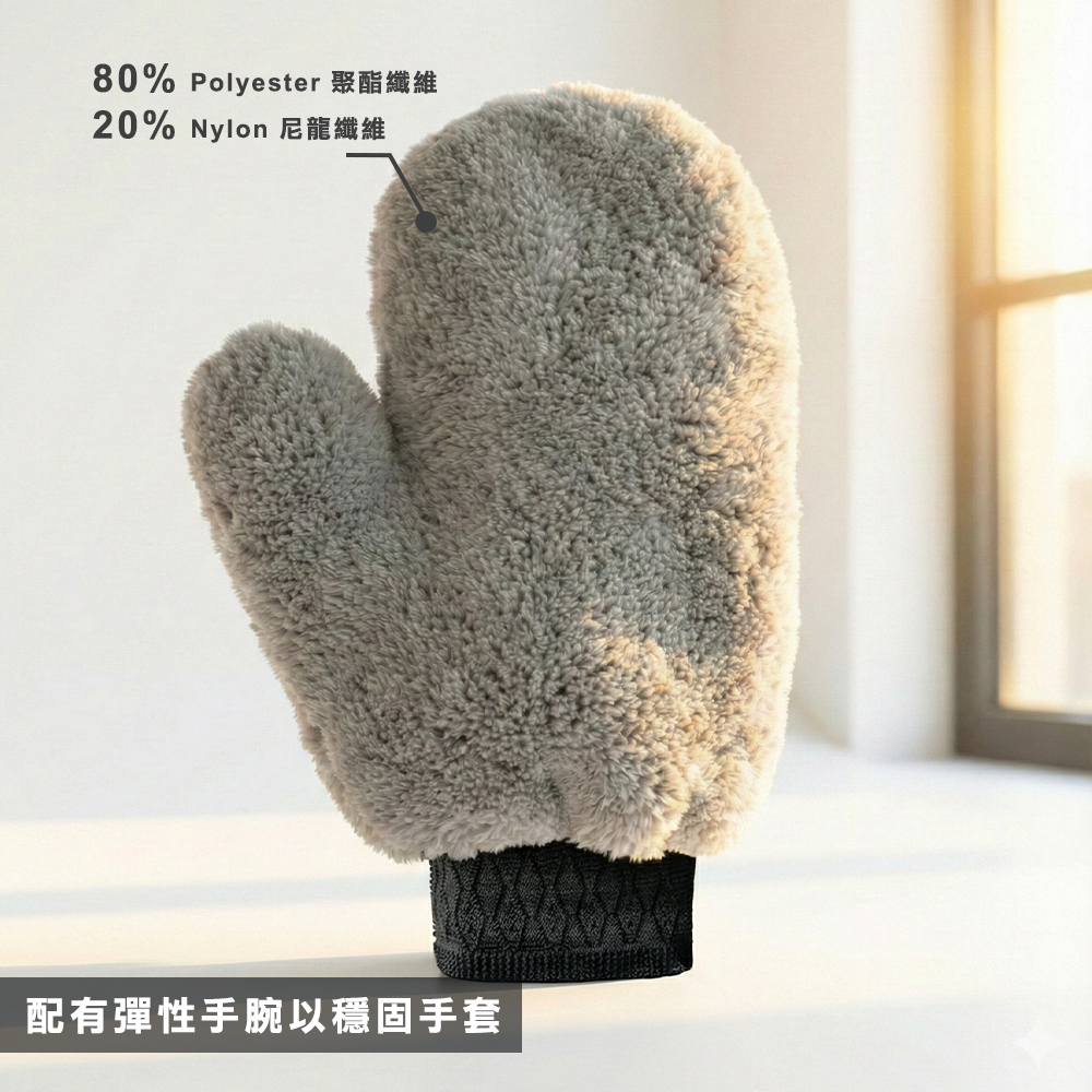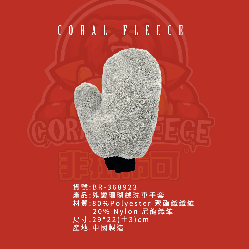 【非拭布可】熊讚珊瑚絨洗車手套-灰色